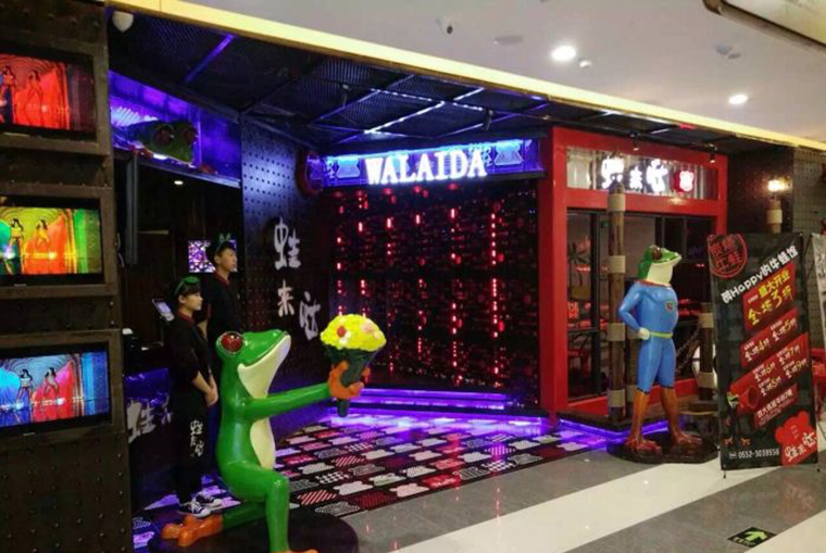 空間精致化,體驗更舒適:打破目前現(xiàn)有工業(yè)風(fēng)、武俠風(fēng)偏粗獷的裝飾風(fēng)格,走更精致,更時尚的網(wǎng)紅店風(fēng)格;現(xiàn)有的蛙主題餐廳的裝飾風(fēng)格基本上是在以蛙來噠和蛙小俠、老佛爺這幾家抄襲為主,缺乏獨(dú)立的思考和創(chuàng)新能力。由于蛙來噠的創(chuàng)始人之前是做烤魚的,首家店基本延續(xù)了烤魚的工業(yè)風(fēng)裝飾,蛙來噠的空間裝飾并沒有太多的可取之處。