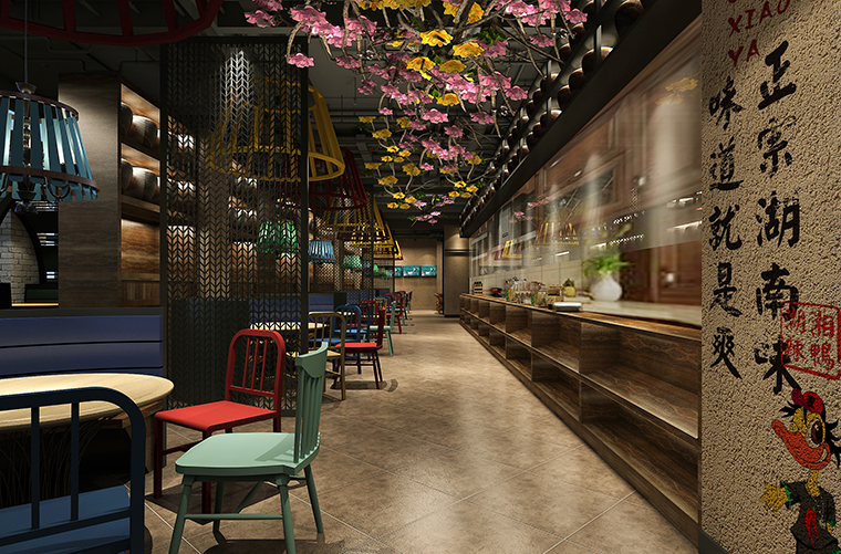 4、裝飾品、雕塑擺件、工藝品、畫藝軟裝。現(xiàn)在的餐廳,主題性越來越強(qiáng)烈鮮明,比如流行的校園烤魚餐廳,喜歡用大量80、90年代的舊電視、鳳凰自行車,表達(dá)對時(shí)光的追憶;在當(dāng)下一些更古典的餐廳如桂滿隴等,大量使用小橋流水,輕舟古船、古琴書法藝術(shù)等在,江南風(fēng)格極為鮮明。但成本高昂,偏離餐飲本質(zhì)。品深餐飲設(shè)計(jì)曾經(jīng)做過的丑小丫湖南菜館,原創(chuàng)設(shè)計(jì)了丫哥、丫妹造型,并且把這個(gè)造型在空間以雕塑形式出現(xiàn),讓消費(fèi)者合影,軟裝效果很好。