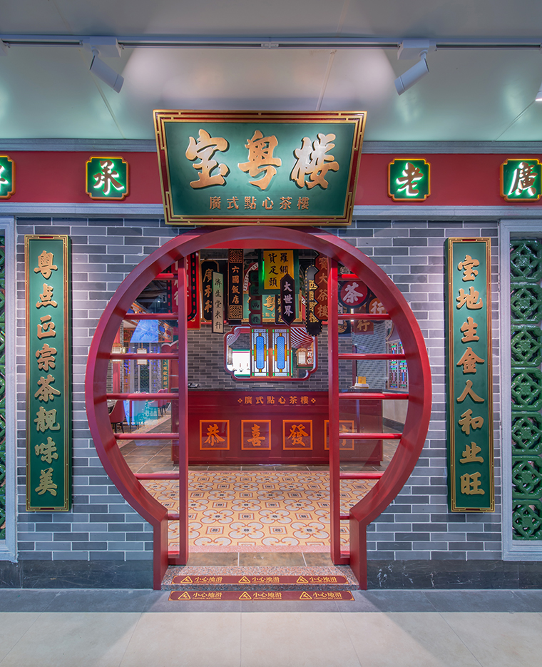 品深餐飲全案策劃設計團隊通過實地走訪廣州西關、荔灣、佛山禪城、祖廟等茶樓密布的廣佛地區,捕捉到了一些經典的元素,如鑊耳山墻、青磚石墻、廣式花窗、店招門牌、路牌指引等。這些元素經過歲月的洗禮,經過文化的沉淀,歷久彌新,非常具有廣州西關特色。