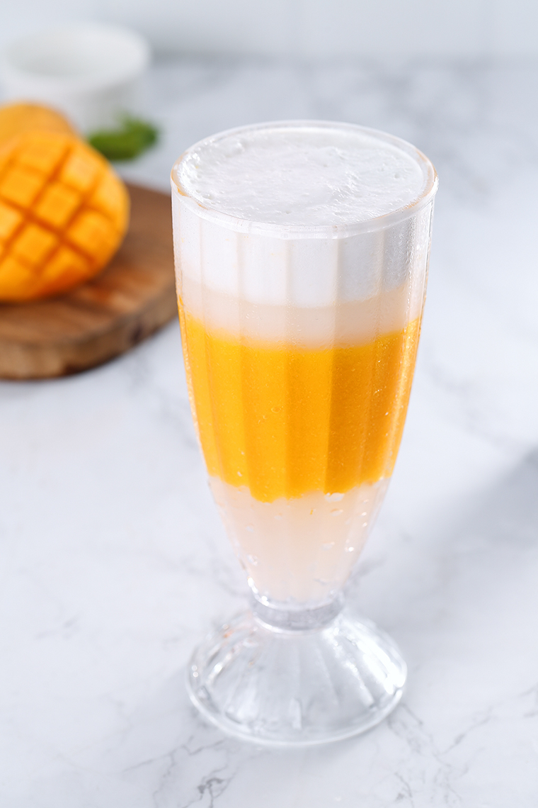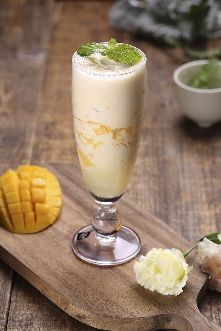 品深餐飲攝影在拍攝鮮榨果飲的時候一方面重點表現果飲鮮榨,果肉濃稠,新鮮可口的感覺。采用豎構圖形式,整個果飲占據屏幕80%以上,畫面更飽滿。鏡頭拉得近更能展現鮮榨果飲的豐潤感。