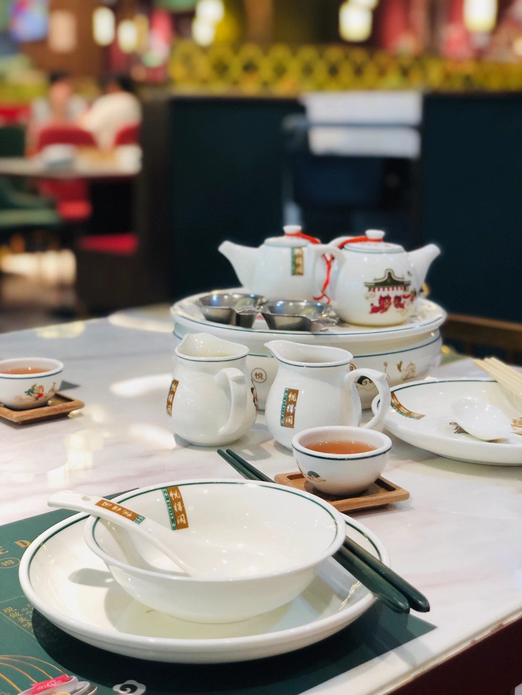 第四步、將品牌訴求、品牌記憶點植入到茶樓的空間裝飾設計中,打造悅得閑廣式點心茶樓新一代門店。