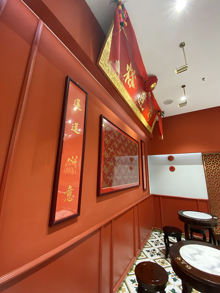我們通過對香港本土糖水店,上海當地糖水老鋪進行詳細的調研,并結合當下流行趨勢。我們發現,喝糖水最多的都是女性顧客,糖水有養顏駐顏的功效。我們提取了當下最流行的“故宮紅”,將主題定位為“來自故宮的視覺盛宴”,整個門店大面積紅色和金色搭配,配色熱情而有貴氣。
