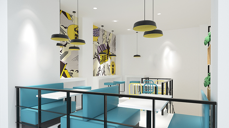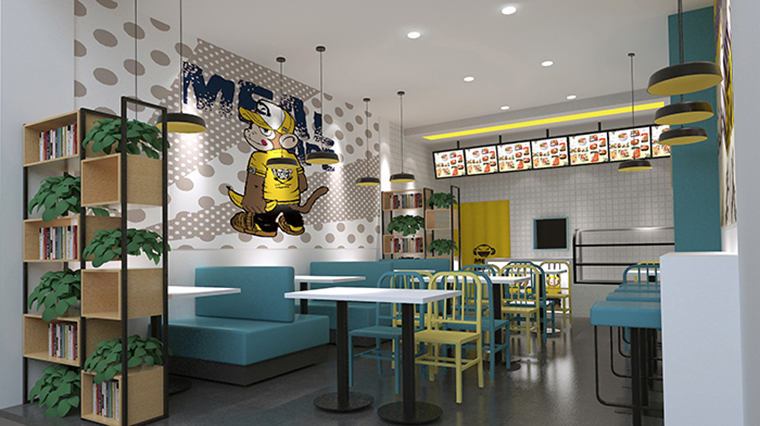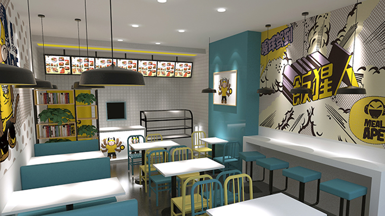 墻面上使用品牌元素,大猩猩的俏皮可愛圖案,不斷向白領(lǐng)傳達(dá)“放心餐,飯猩送”這一品牌訴求,強(qiáng)化食客的記憶。