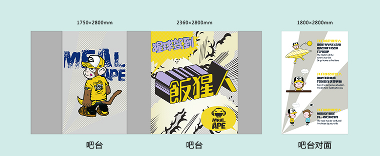 由于此類快餐屬于比較新興的產(chǎn)品,對消費(fèi)者有一個普及教育的過程。所以在品牌宣傳推廣方面,品深餐飲設(shè)計(jì)為該品牌制定了更加具象化的畫面。俏皮可愛的大猩猩,大猩猩與人類有共同的祖先,與人類更有親近感,圖形識別很高,傳播性也很好,將品牌形象進(jìn)行明確的動物形象化,也是品牌迅速被消費(fèi)者所熟知的一種營銷推廣策略。