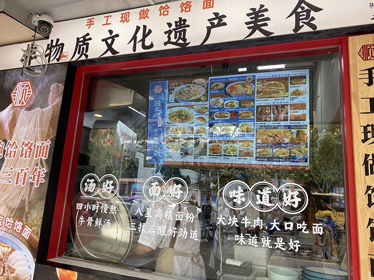 1、從門頭設計到門面設計表達,整個門店設計的重心:手工現做饸饹面,這是我們產品的靈魂,也是我們區別于其他連鎖面館產品的核心。康熙賜名,是品牌故事的傳說,也是饸饹面權威背書的一種方式。與門口張貼的非物質文化遺傳美食相呼應,讓消費者對饸饹面有了認知,對錢三順品牌肅然起敬;